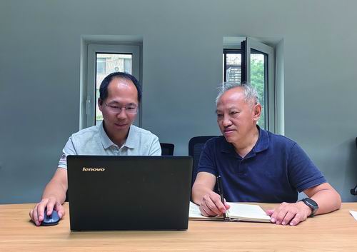杨柯(右)和王青川正在讨论问题。受访者供图