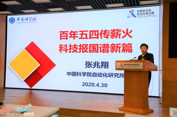 张兆翔研究员是中科院2019年度“青年学习标兵”获得者,他以《百年五四传薪火,科技报国谱新篇》为主题进行报告。他首先讲述了对科学家精神的理解,要以老一辈科学家为榜样。张兆翔研究员表示,在接下来的科研工作中要和团队成员一起,聚焦探索智能的本质,挑战根本性理论难题,以“板凳甘坐十年冷”的专注精神,真正做从0到1创新工作,为重大成果产出和研究所科技创新事业贡献自己的力量。