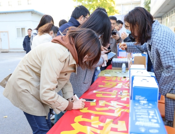 广大职工、学生热情参与,通过在宣传横幅上签名表达对光盘行动的支持,并在餐后对午餐“光盘”进行打卡记录。活动当天,共有800余人次参与横幅签名、光盘打卡行动。
