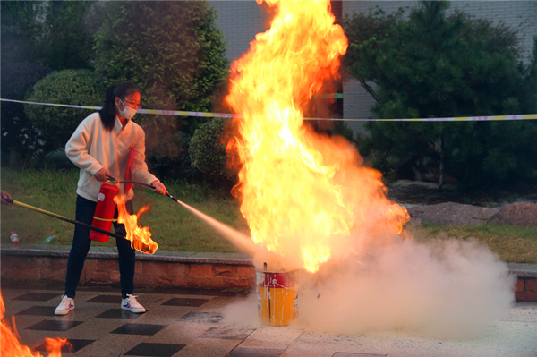 本次消防演练活动由模拟楼宇初期火灾逃生及救援演练、现场消防安全知识问答、灭火器使用场景演示及逃生屋体验等四部分组成。伴随着实验楼火灾警报的响起,楼内所有人员在消防广播和安全员的指引下,迅速而有序的完成紧急疏散逃生演习。同时各演练职能小组各司其职,分别负责引导人员疏散、扑灭初期火灾、解救危困人员、协助消防官兵灭火等。疏散人员全部到达楼前广场后,消防员与现场人员进行了消防安全知识问答互动。在消防员的协助下,现场人员还进行了灭火实战操作和逃生屋体验。