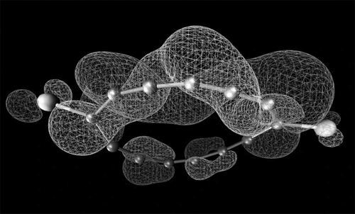 这些杠铃状结构与它们的邻居形成了额外的键,即化学家所说的共轭结构。在这种结构中,电子被链中的许多原子共享。各种类型的共轭结构形成了苯等芳烃分子及石墨烯等二维材料的一些特殊性质。
