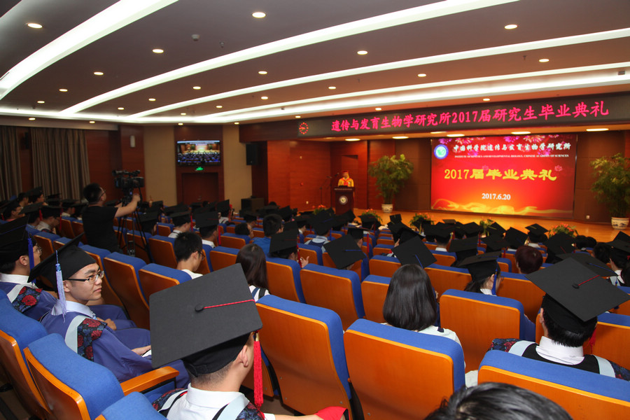 鲜花怒放桃李芬芳,歌舞飞扬不改离殇。6月20日上午,中国科学院遗传与发育生物学研究所2017届研究生毕业典礼在1号楼报告厅隆重举行。所领导、导师代表、职能部门负责人、毕业生及毕业生家属代表等共计160余人欢聚一堂,共同见证这美好而又难忘的时刻。毕业典礼由所党委副书记韩一波主持。