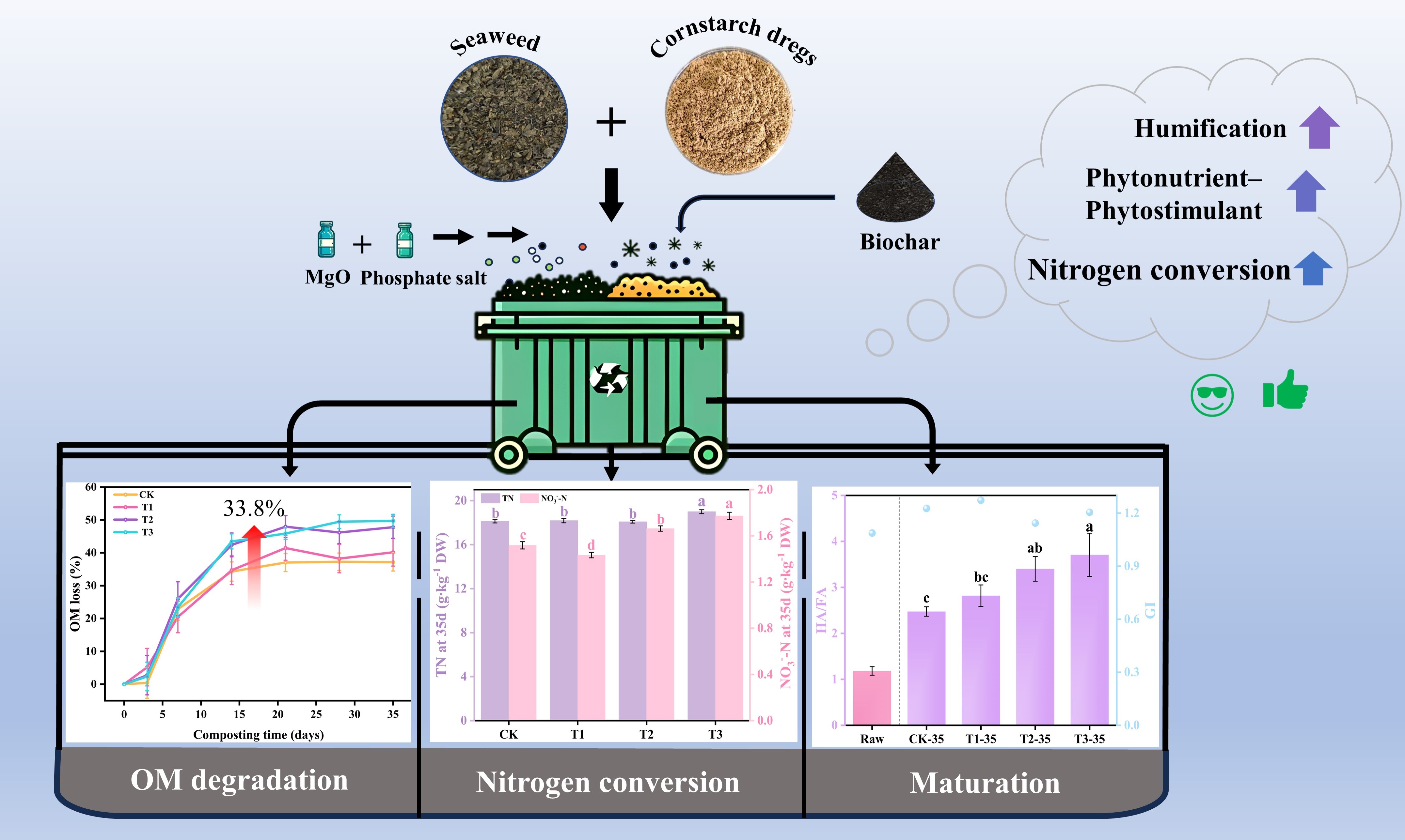 随着全球水产养殖产业的发展,每年会产生大量海藻、牡蛎壳等废弃物。而这些废弃物通常被堆放在垃圾填埋场、近海滩涂或直接丢弃到海洋中,对土壤、自然水域及海洋生态系统带来环境影响。为促进水产养殖的可持续发展,中国科学院烟台海岸带研究所冯大伟团队在海藻、牡蛎壳等废弃物资源化利用及土壤改良技术研究方面取得进展。该团队运用有机-无机共堆肥策略并采用堆肥过程精细化调控与复合材料应用等措施,提升了废弃物资源化利用效率,为生态环境保护与可持续农业发展开辟了新路径。