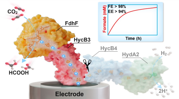这一成果实现了高效的电响应的二氧化碳还原酶,为二氧化碳生物制造开辟了新途径。