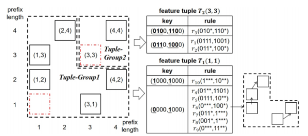针对SDN流表查找的性能挑战,该团队联合华为算法专家深入分析多维规则的内在关联,提出哈希元组划分合并算法BTP,平衡各元组之间以及元组内部哈希表内的负载,有效减少哈希元组数以及规则合并引发的哈希冲突,从而提高查找与更新性能。实验效果显示,相比经典算法PSTSS和最新方法DT、TupleTree,BTP的查找性能可分别提高16.5倍、2.2倍、3.3倍。相关成果被IEEE INFOCOM 2025录用。