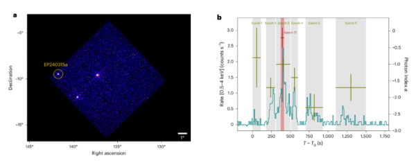 进一步,分析发现,EP240315a与名为GRB240315C的伽马射线暴相关。该暴被美国宇航局Swift-BAT和俄罗斯Konus-Wind探测到。