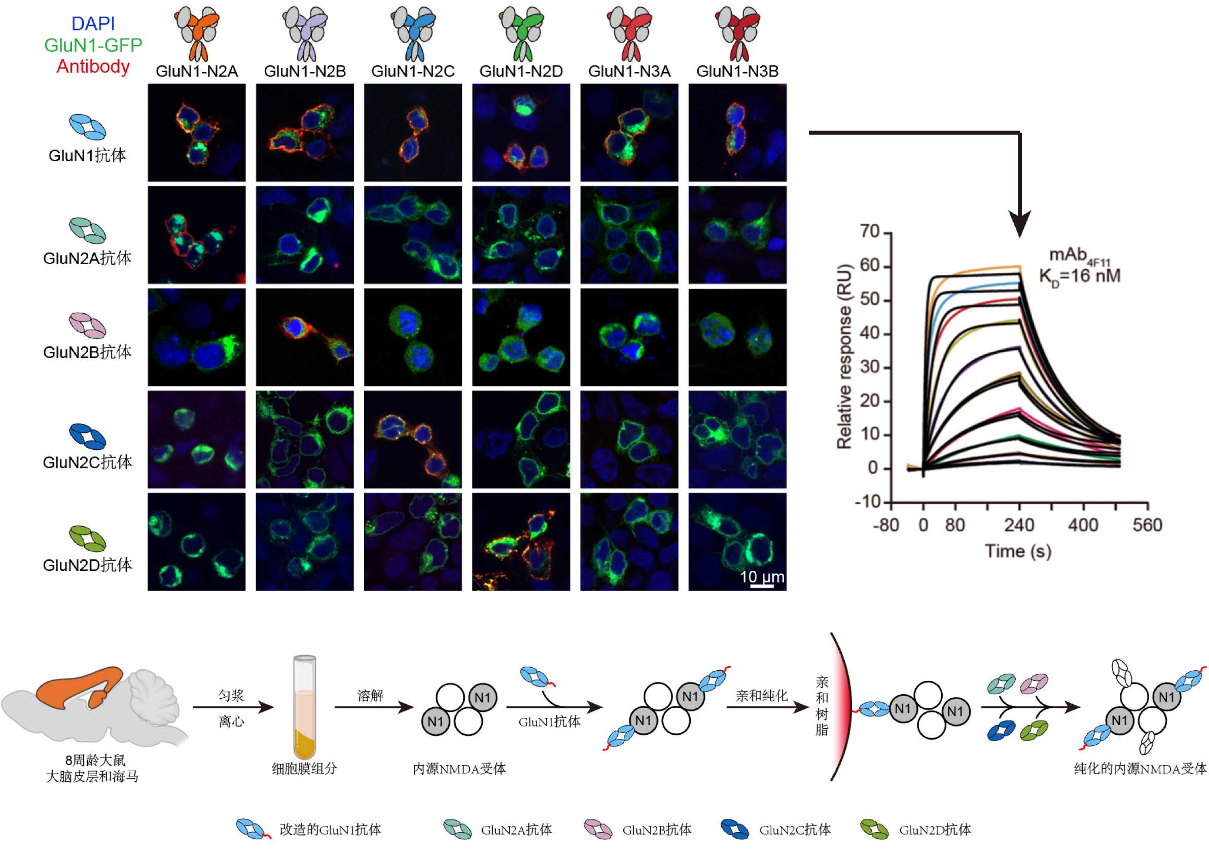 靶向NMDA受体亚基的高亲和力单抗的开发和内源NMDA受体的富集纯化策略
