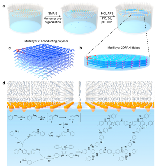 二维聚苯胺结构及制备过程示意图