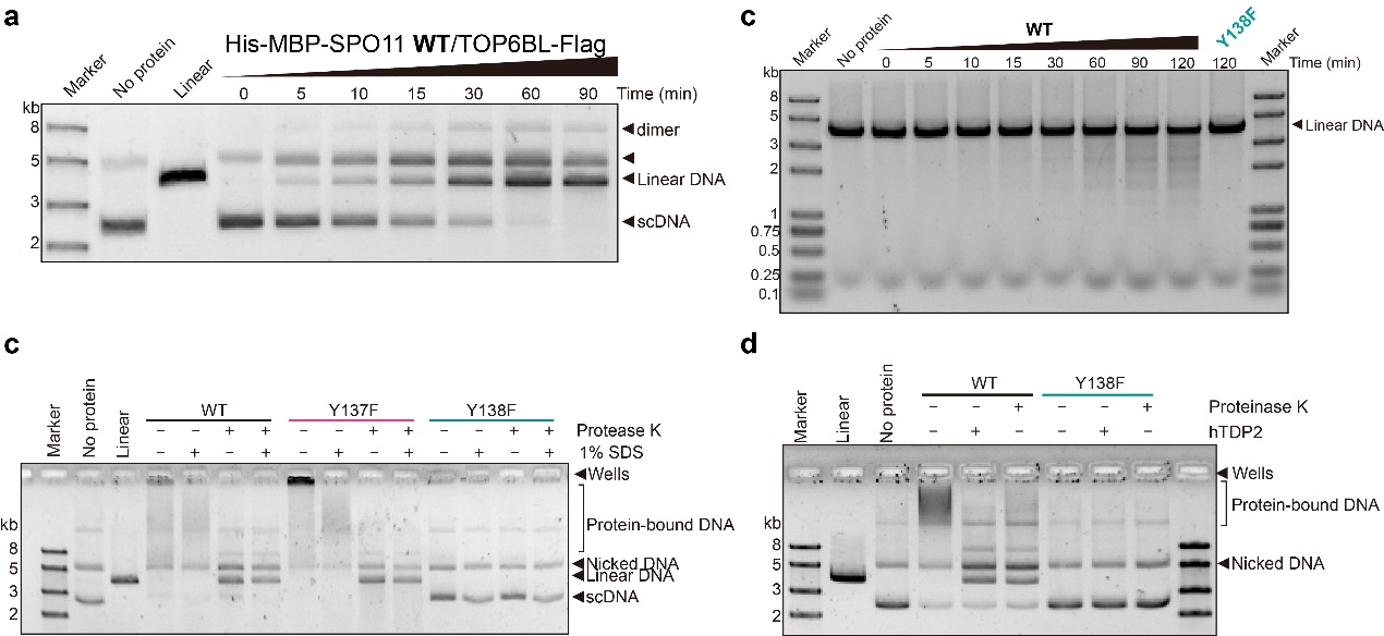 SPO11-TOP6BL切割DNA后共价连接在DNA的5'端