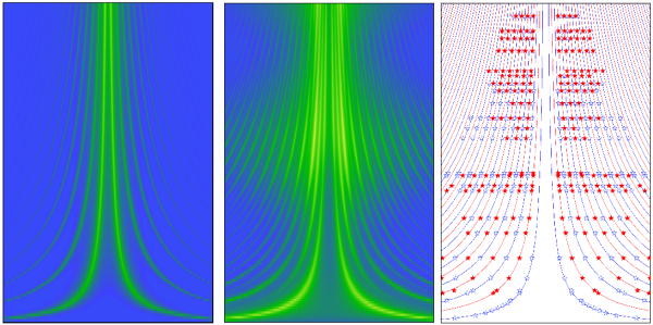 (左)传统电偶极近似理论计算的层间呼吸声子拉曼强度随材料厚度的演化规律;(中)光子-声子耦合空间相干模型计算的层间呼吸声子拉曼强度随材料厚度的演化规律;(右)实验观察到奇数支(空五星,拉曼允许)和偶数支(实五星,传统理论拉曼禁戒而新理论拉曼允许)层间呼吸声子模