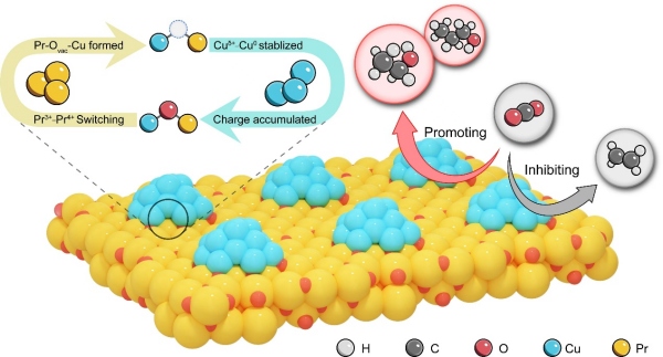 镨铜氧化物异质界面上电催化CO2加氢制备多碳醇的反应机制