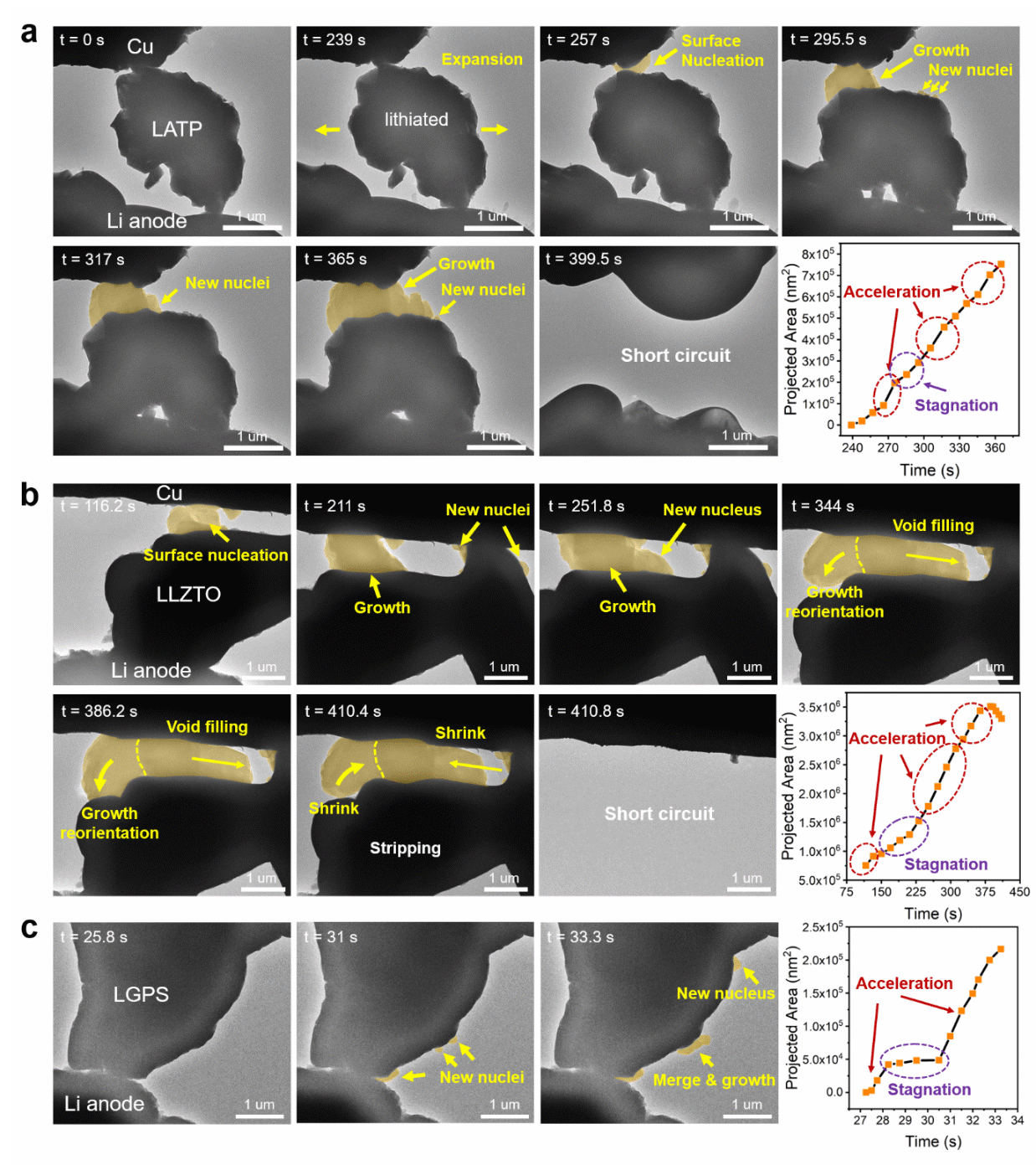 锂金属析出—电解质短路动力学的原位电镜观察