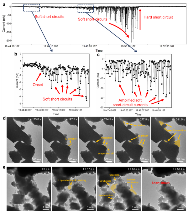 软短路—硬短路的转变动力学的原位电镜观察和短路电流监测