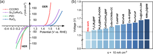 这种电子协同与结构演变的耦合机制,使CCCRO单相材料在全解水反应中实现了阴、阳两极的“一材双效”高性能,有望突破实际应用对高效、低成本且长期稳定催化剂的需求,并为优异低浓度贵金属催化剂的设计、机理与应用研究提供了新思路。