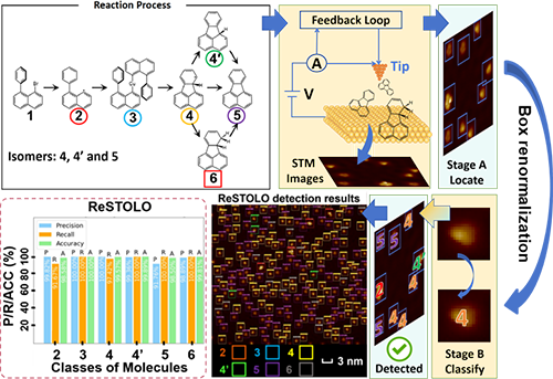 近期,中国科学院物理研究所/北京凝聚态物理国家研究中心和苏州大学合作,开发并设计了基于识别框归一化的两阶段分子机器视觉识别框架ReSTOLO。该框架在数据有限、缺乏超结构信息的条件下,实现了6类相似分子体系STM图像的精确定位与分类,其单类平均精度和召回率均超过85%,在另外两个分子体系STM图像识别中的表现也验证了其有效性与泛化能力。
