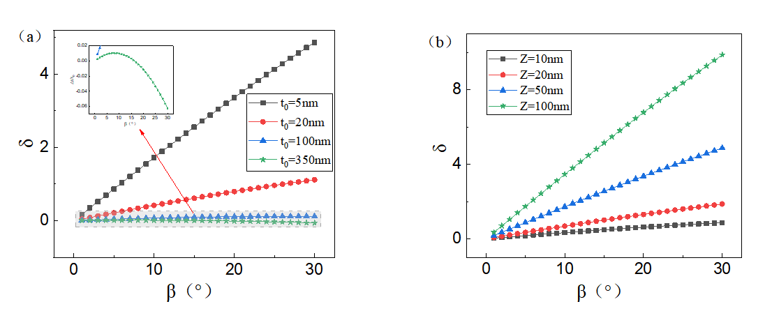 相对误差δ随倾转角度β变化的计算结果