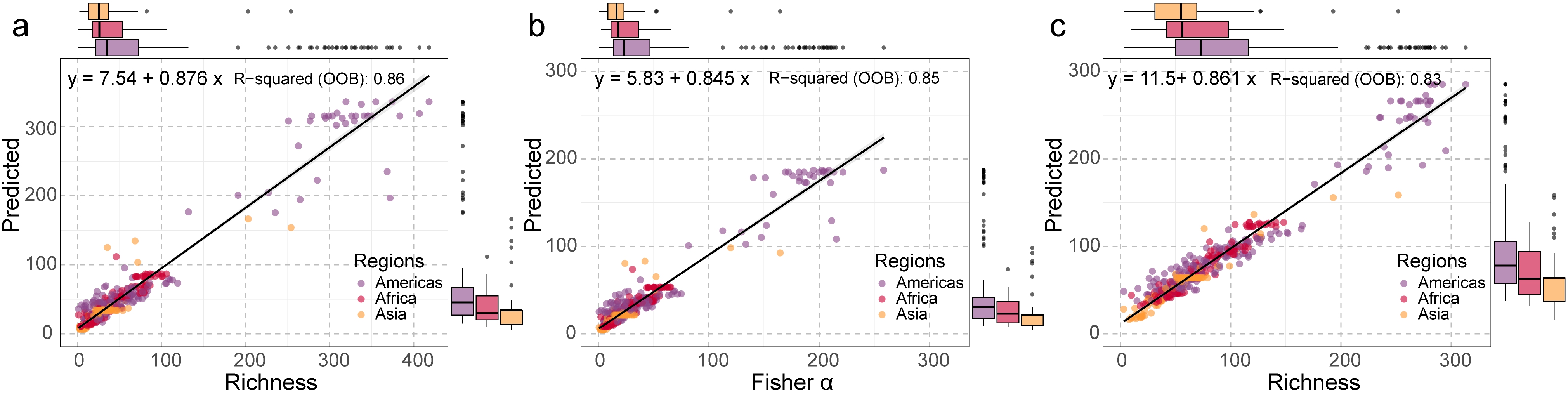 随机森林模型预测的树种多样性指数对比分析
