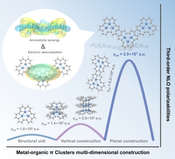 金属—有机π团簇通过金属d轨道与配体p轨道的杂化,实现了双重芳香协同效应,提升了体系的电子离域能力,为光电功能材料的设计提供了新平台。
