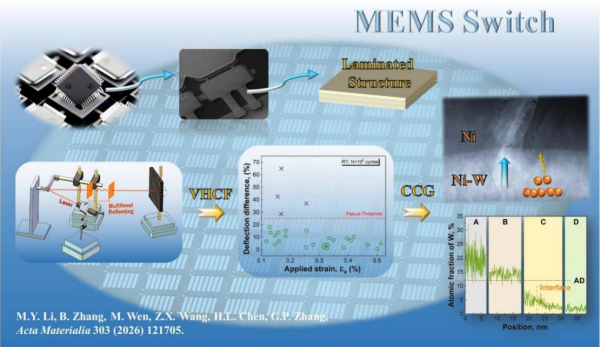 将金属做到纳米晶级别,意味着需要极高的强度。但这项研究的关键在于“千层饼”结构,在承受亿万次疲劳载荷时,内部会发生动态的、智能的“自我”调节与修复。团队利用自主研发的测试系统,验证了材料内部的奇妙变化:在循环受力过程中,材料界面处的原子开始“搬家”。镍原子会从平滑异质界面向粗糙异质界面扩散。这一方式具有两个优势:粗糙界面附近形成了 “贫钨区”(钨含量变少),这片区域变得更软,像一层缓冲垫,增强了不同材料层之间的变形协调性,避免了应力集中;在平滑界面附近留下了“富钨区”(钨含量变多),为第二种机制创造了条件。“富钨区”降低了材料的“层错能”,可激发材料内部动态、持续地生成大量纳米孪晶和层错。将这些“纳米孪晶”想象成材料内部长出来的、极其细微的强化筋,可有效阻挡和分散疲劳损伤,防止塑性应变累积。两种机制协同工作,如同给材料同时配备了“动态缓冲层”和“持续生长的强化筋”,延缓了疲劳裂纹的产生和扩展,实现了超长寿命。这种新型纳米层状复合材料在数十亿次超高周疲劳测试中,其寿命优于当前主流微机电系统开关材料,与规定的门槛值相比,超长周次疲劳耐久性提升约60%,突破了技术瓶颈。