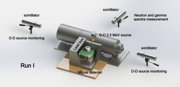 研究团队自主研发了微结构气体探测器+像素读出芯片组合的超灵敏探测装置,相当于一台可拍摄“单原子运动中释放电子过程”的“照相机”。利用紧凑型氘-氘聚变反应加速器中子源,轰击“照相机”内的气体分子,同时产生原子核反冲与米格达尔电子,二者形成“共顶点”的独特轨迹。