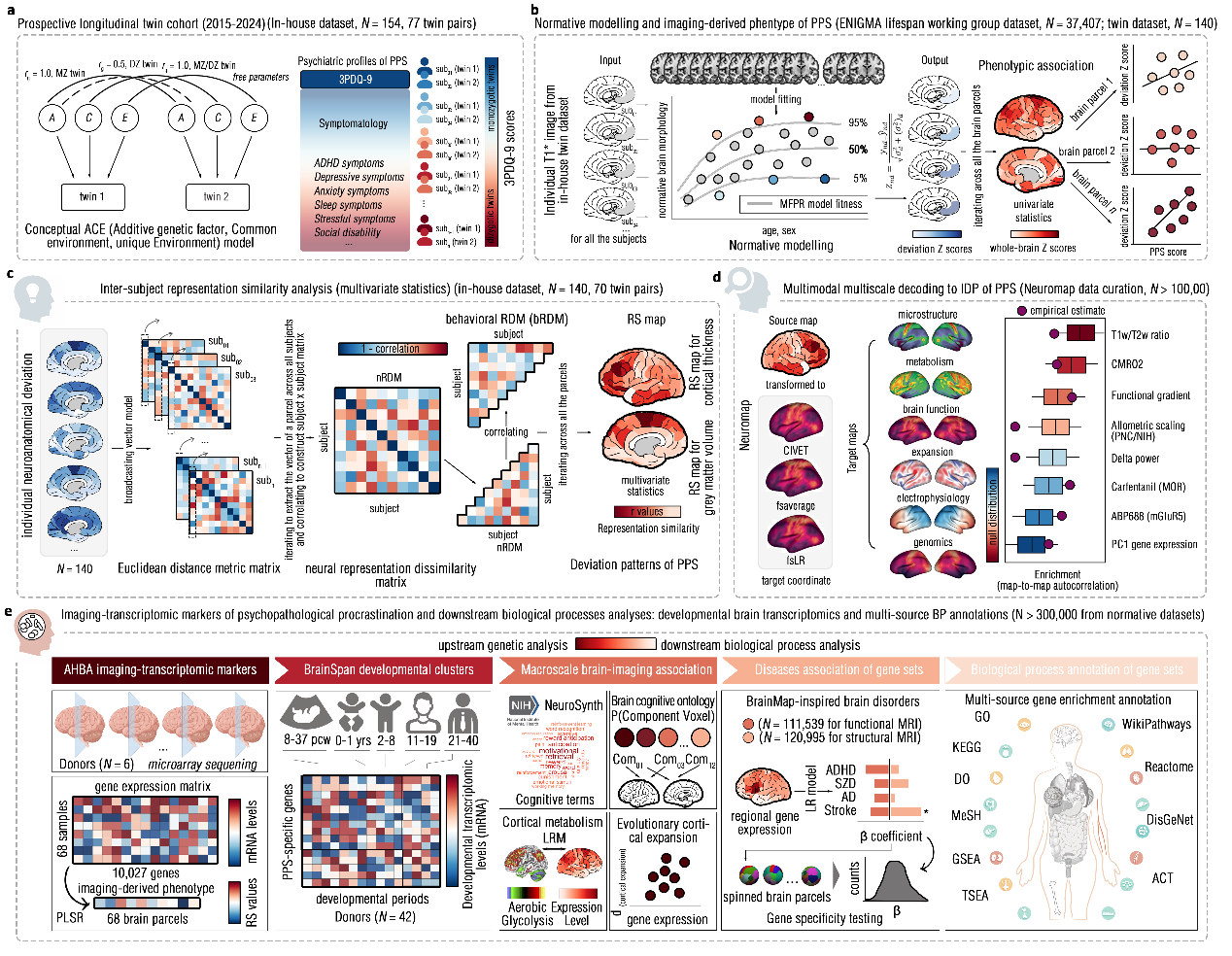 近日,中国科学院心理研究所等研究团队,依托双生子研究平台,解析了连接青少年期神经发育偏离与成年期病理性拖延间的共享神经遗传架构。