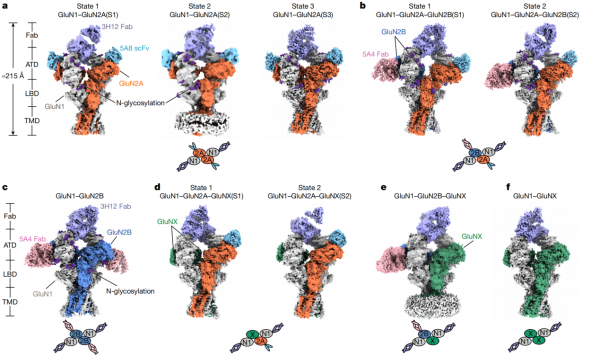 NMDA受体功能与其亚基组成密切相关。解析天然状态下NMDA受体的亚基组成、组装方式和门控转换机制,对于开发靶向特定亚型的治疗药物具有重要意义。