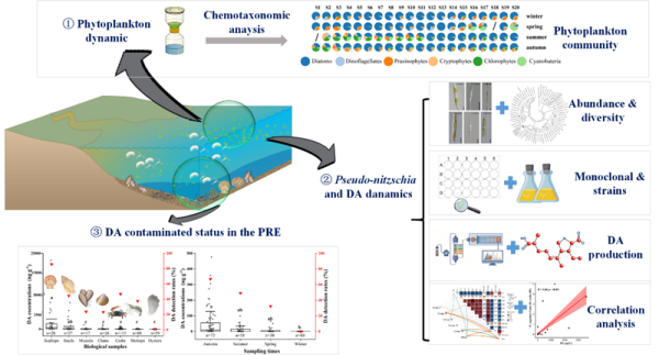 软骨藻酸是由某些拟菱形藻产生的一种天然毒素,可累积在贝类等生物体内,若被人误食,或引发中毒症状。尽管南海海域此前已发现多种产毒藻类,但在复杂的河口生态系统中,软骨藻酸的精准生物来源及其在多营养级间的传递规律一直是研究难点。