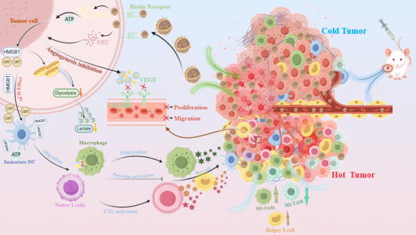 该系统协同实现免疫原性细胞死亡、肿瘤相关巨噬细胞M1极化、抗血管生成三重作用,从而高效抑制肿瘤增殖转移,且展现出优异的生物安全性。
