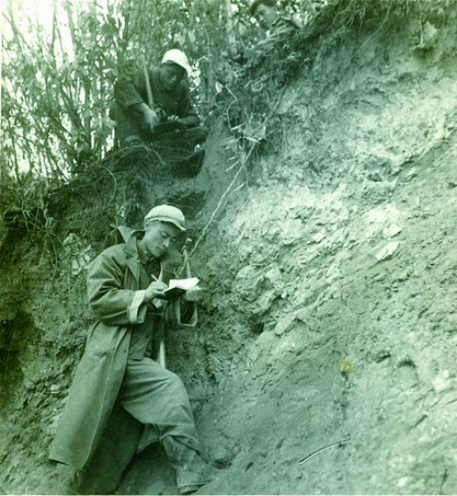孙鸿烈(下)在青藏高原做考察记录。受访者供图