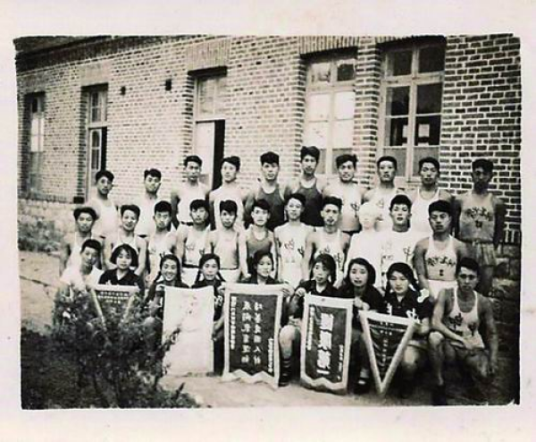 上世纪50年代,胡敦欣(二排右四)参加即墨中学运动会合影。