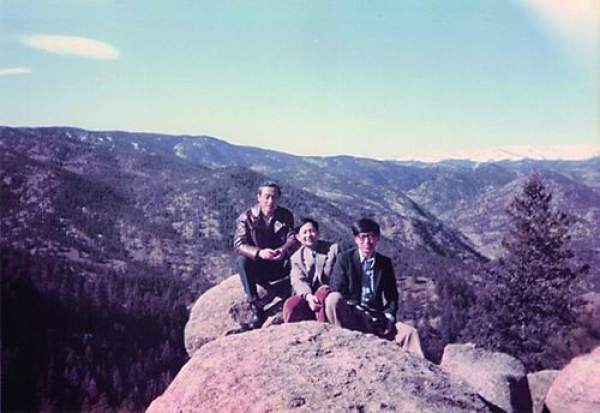 1982年,胡敦欣(右一)在美国与孙鸿烈(左一)、符淙斌探讨中美西太平洋合作事宜。