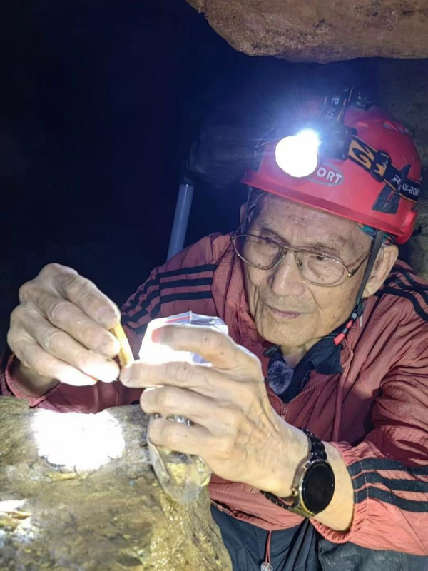他的研究从古人类延伸到大熊猫、剑齿象等古生物。2025年底,他在重庆一处溶洞调查熊猫化石,狭窄洞穴中,匍匐前行了三个小时。这段视频在电视台播出的时候,黄老笑言,“93岁,要当39岁来过。”——巧的是,39岁那一年也是他的收获之年,他在陕西发现了“长武智人”。