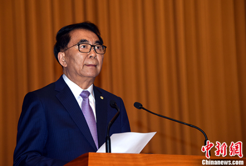 白春礼代表学部主席团做工作报告。中新社记者 孙自法 摄