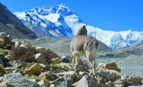 这是珠峰大本营附近的一只岩羊。“巅峰使命”珠峰科考正在珠峰地区进行。在珠峰大本营等地,随处可见各种野生动物,惬意地生活在同一片蓝天之下。新华社记者旦增尼玛曲珠摄