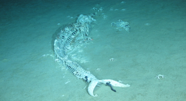 鲸落(Whale Fall)是指鲸死亡后落入深海形成的生态系统,与热液、冷泉一同被称为是深海生命的“绿洲”,在北太平洋深海中,鲸落维持了至少43个种类12490个生物体的生存,促进了深海生命的繁荣。