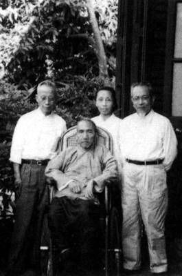 竺可桢(左一)看望老友陈寅恪(左二)
