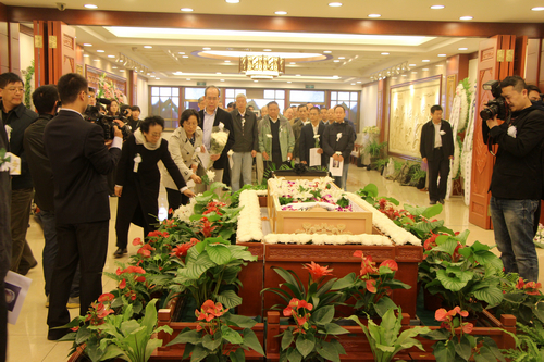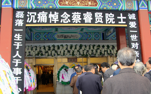 上午8时,遗体告别仪式正式开始。洁白素雅的花圈摆满了殡仪馆大厅四周,厅内哀乐低回,人们神情肃穆,气氛庄严。蔡睿贤院士的遗体静卧在鲜花和翠柏丛中,面容安详。在哀乐声中,大家胸戴白花、手持白菊,在蔡老灵前深深鞠躬,并瞻仰他的遗容作最后的告别。