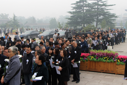 在送别的人群中有青年人、学生,也有满头白发的长者;有院士的生前好友、同事,也有他的晚辈弟子。大家都怀着同样沉重的心情,送别这位科学巨擘。