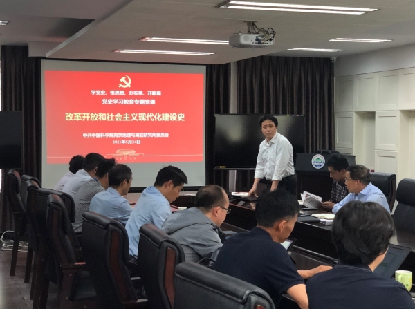 5月24日,中国科学院南京地理与湖泊研究所召开党委理论中心组集体学习,传达学习中央重要文件精神和中科院副院长、党组副书记阴和俊来所调研的重要讲话精神,专题学习改革开放新时期历史。南京地理所领导班子成员、党委委员、纪委委员、党支部书记、机关职能部门和研究室负责人等参加会议。党委书记谷孝鸿主持学习会。