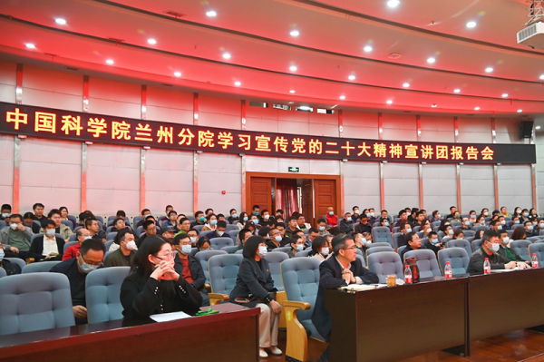 兰州地区院属各单位领导班子及党员干部职工参加了报告会;中国科学院青海盐湖研究所、中国科学院西北高原生物研究所以视频会议形式听取了报告。会议由兰州分院分党组副书记、系统单位党委副书记陈改学主持。