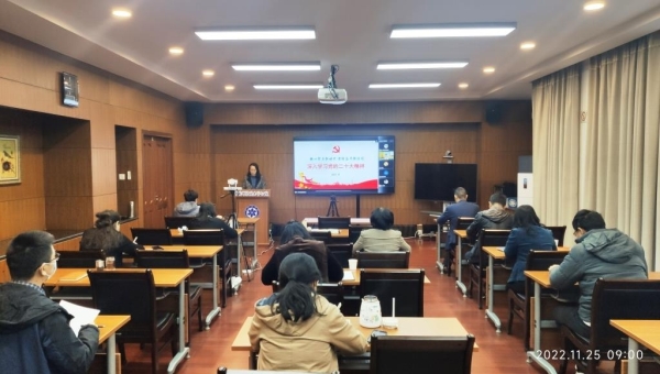 党的二十大代表、中科院学习贯彻党的二十大精神宣讲团成员、中科院古脊椎动物与古人类研究所研究员付巧妹作了题为《凝心聚力新时代 团结奋斗新征程——深入学习党的二十大精神》的宣讲报告。付巧妹从大会概况、报告速览、新表述新概括新论断、学习体会和感想等四方面,全面系统地阐释了党的二十大精神,并重点梳理了党的二十大关于科技创新和人才战略的重要论述。宣讲深入浅出,内涵丰富,逻辑严谨,思想深刻,对大家深刻理解、准确把握和深入贯彻二十大精神有极大帮助。