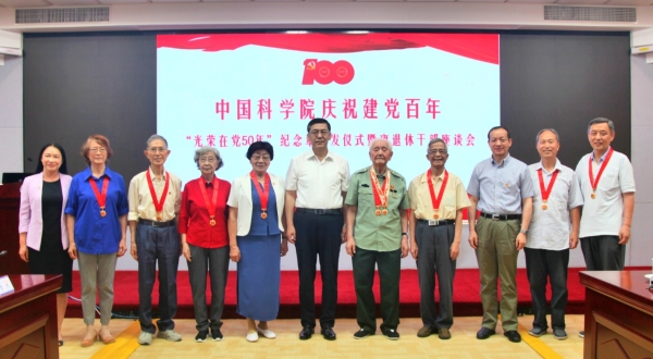 6月28日,中国科学院举行“光荣在党50年”纪念章颁发仪式暨离退休干部座谈会。中科院副院长、党组副书记阴和俊出席并讲话,副秘书长李和风主持仪式活动。